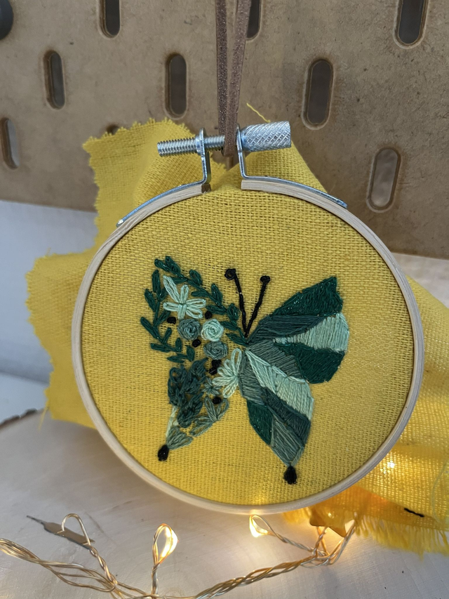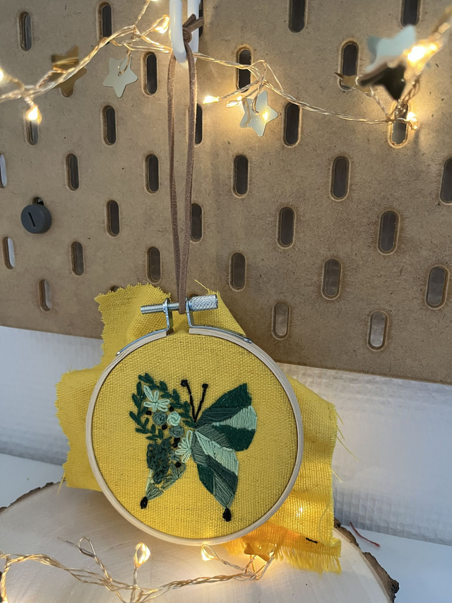 Tambour de 8cm de diamètre, tenu par une cordelette.