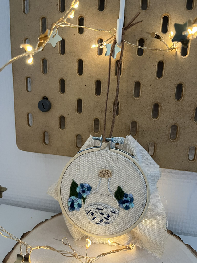 Tambour de 8cm de diamètre, tenu par une cordelette.